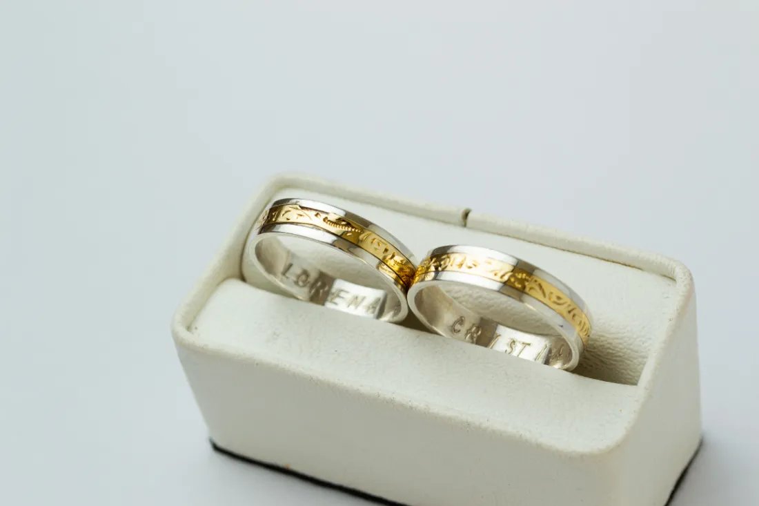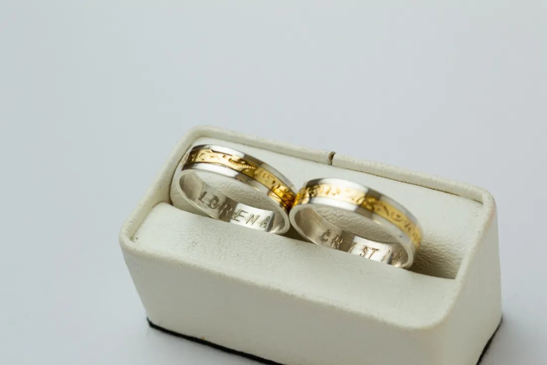 ALianzas italianas labradas o lisas con hilo de oro cruzado.